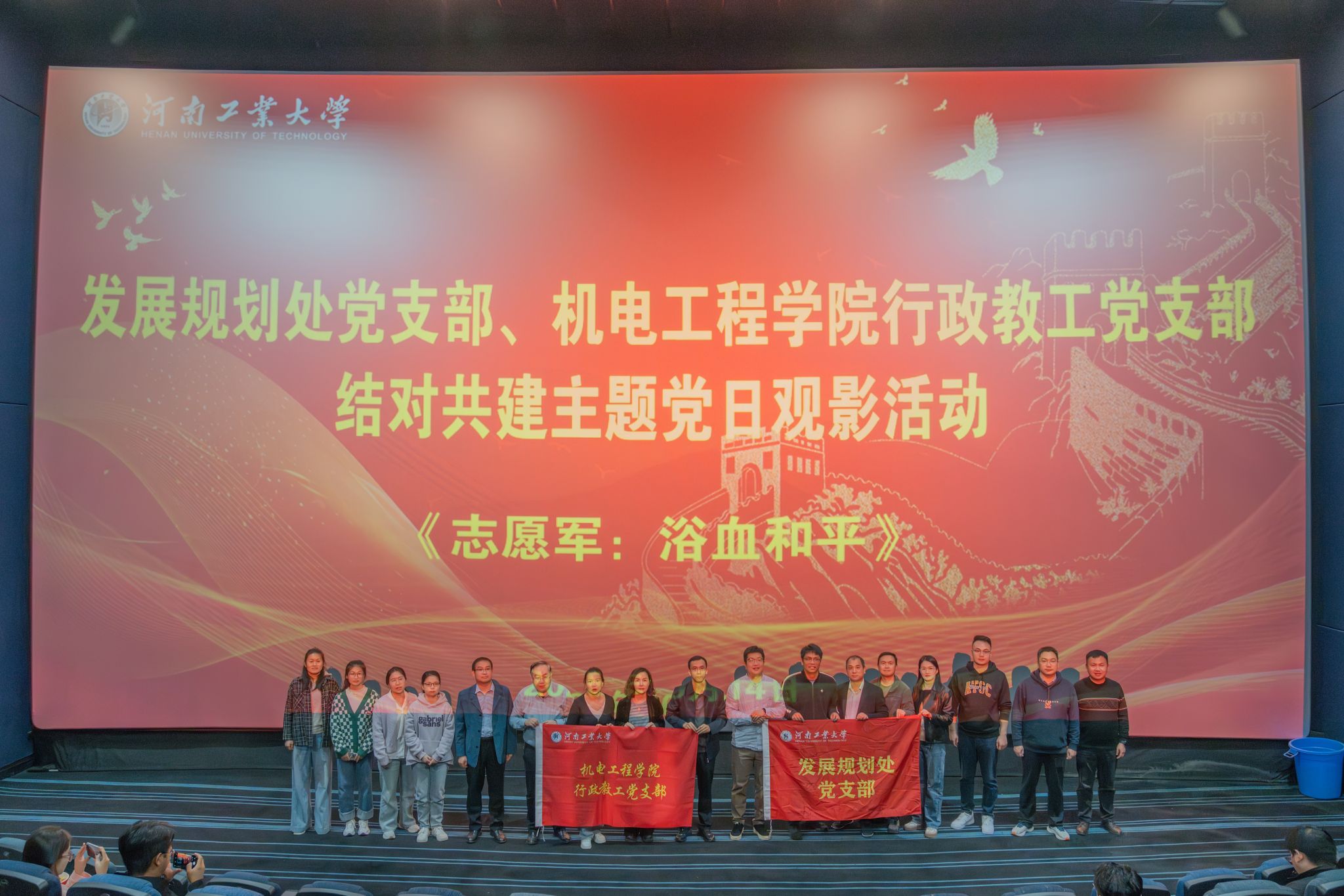 共赴英雄征程,礼赞和平胜利!为加强师生的思想政治建设和爱国主义情怀,激发干事创业的责任感与使命感,我院联合教务党支部、发展规划处党支部组织师生党员开展结对共建主题党日活动,集体观影《志愿军:浴血和平》,在光影叙事中重温峥嵘岁月,感悟英雄精神。