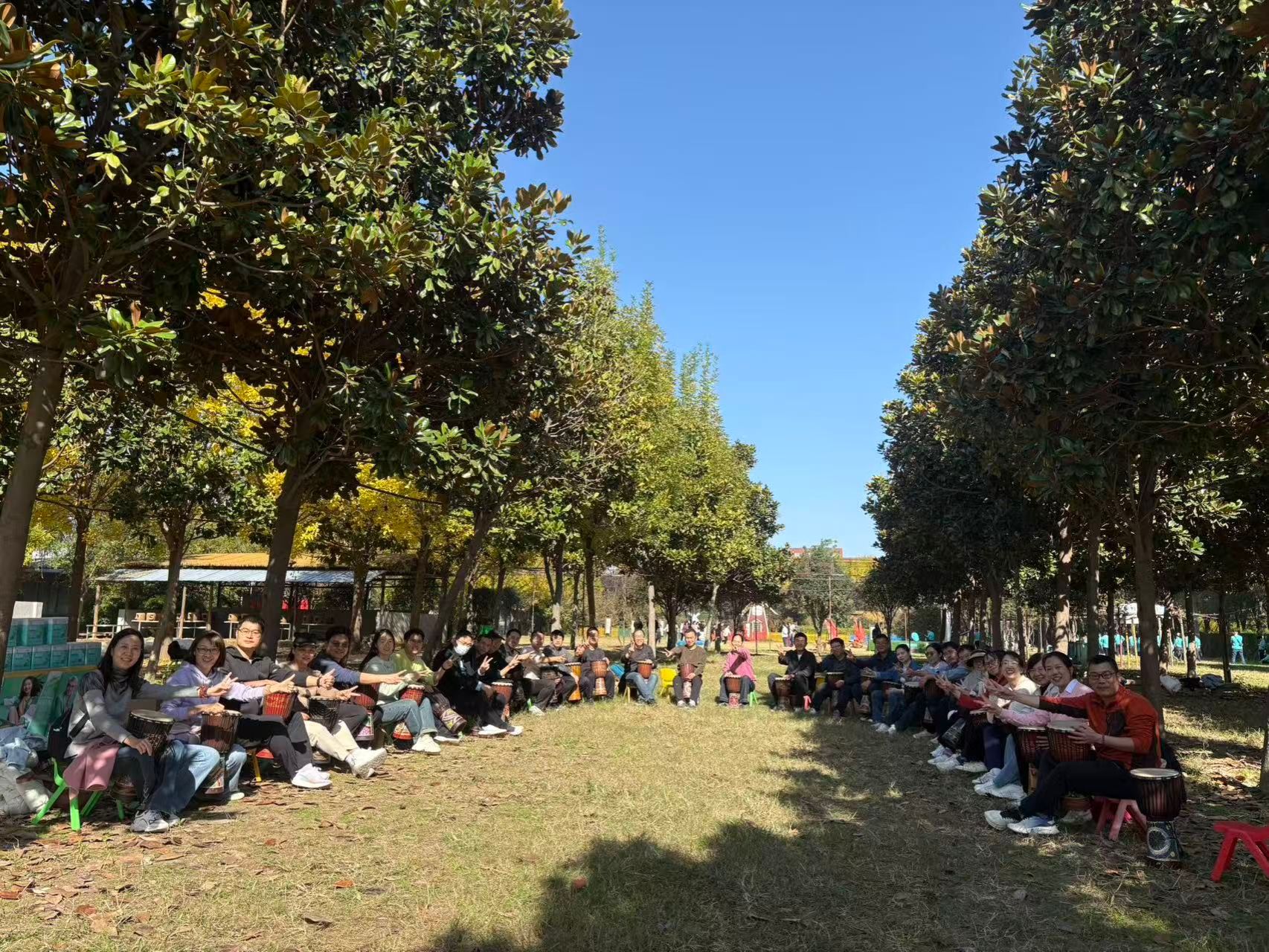 最具特色的“非洲鼓”课程,为本次活动画上了温情的句号。在教练的指导下,老师们围坐成圈,从简单的节奏练习开始,逐渐掌握基础节拍。随着音乐响起,大家跟着旋律共同击鼓,这一刻通过音乐传递着快乐与温暖。