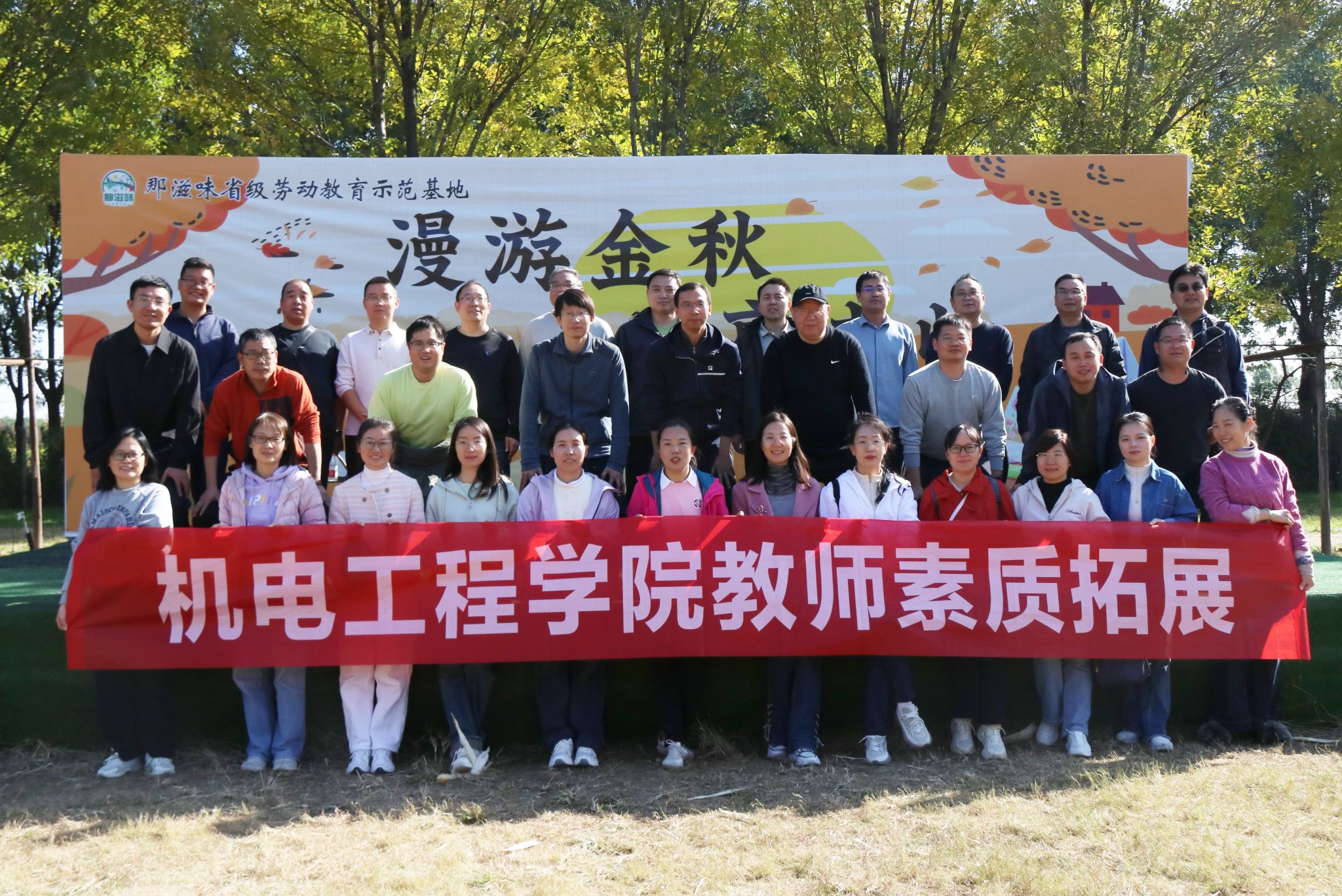 秋意渐浓,暖意更盛。11月1日,为进一步丰富学院教职工文化生活、有效缓解教学科研压力、深化同事间的交流情谊,学院精心策划,在那滋味劳动教育示范基地举行以“凝心聚力,携手同行”为主题的秋季教职工素质拓展活动。40余名教职工在欢声笑语中解锁团队协作新体验,在趣味挑战中凝聚奋进力量。