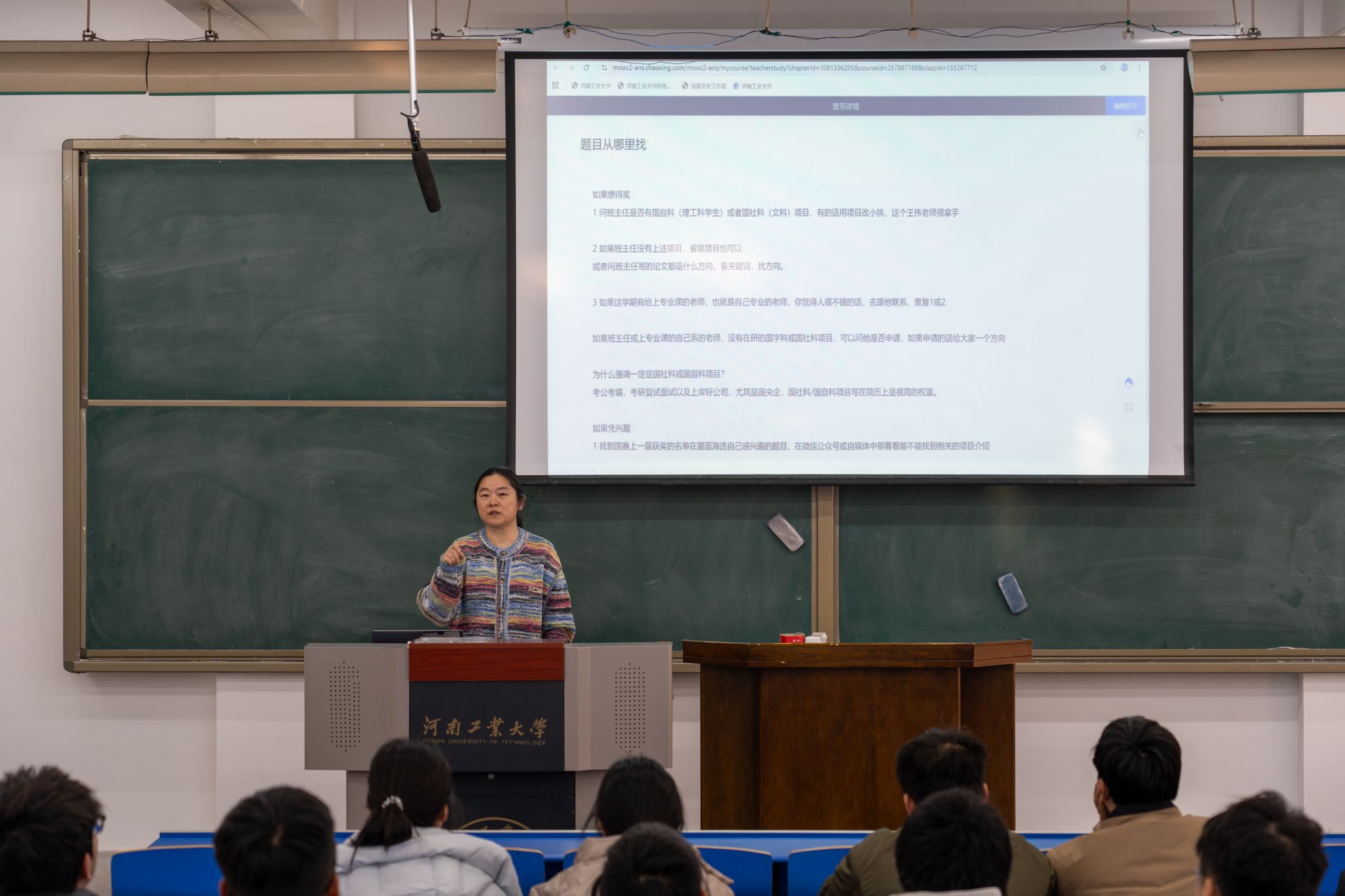 会上,王伟结合自身丰富的赛事指导经验,围绕大赛关键环节,系统讲解了选题策略、团队组建、组别选择及备赛注意事项。她结合典型案例与最新趋势,阐释了从创意萌芽到项目落地的完整路径,并立足我院机械学科特色,分析学生参赛的优势,为同学们提供了清晰备赛指引。互动环节,与会同学围绕项目可行性、竞赛注意事项等问题现场进行交流。王老师逐一给予细致解答和建议。