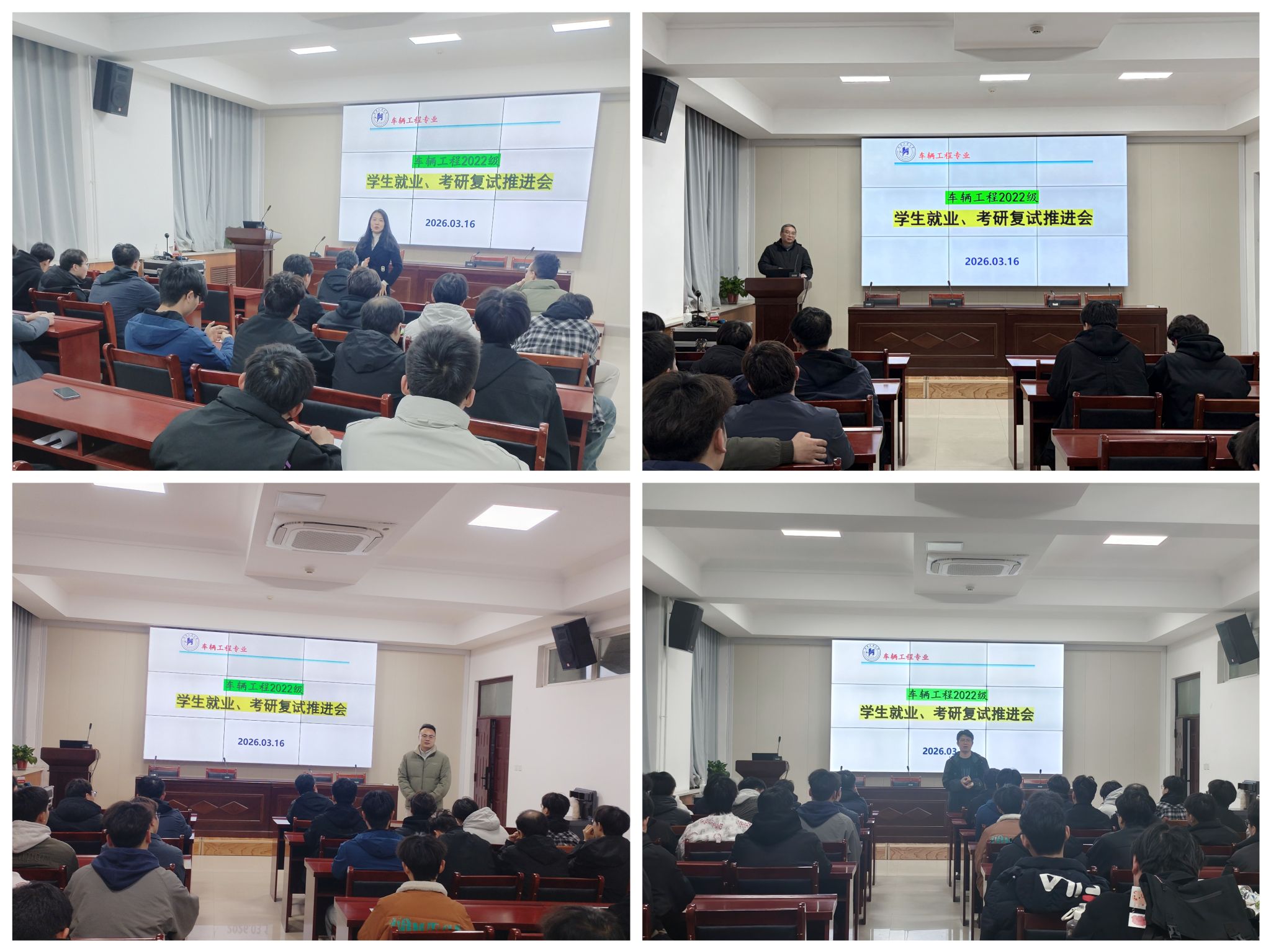 为扎实做好毕业生就业服务和考研复试保障工作,帮助学生精准把握复试调剂关键环节、提升求职竞争力,3月16日,机电工程学院车辆工程系在7224捷赛厅召开2026届毕业生就业与考研复试推进会。学院党委副书记张东霞、研究生工作办公室主任李少帅、车辆工程系主任吴心平、专业教师司俊德及2026届全体毕业生参加会议。
