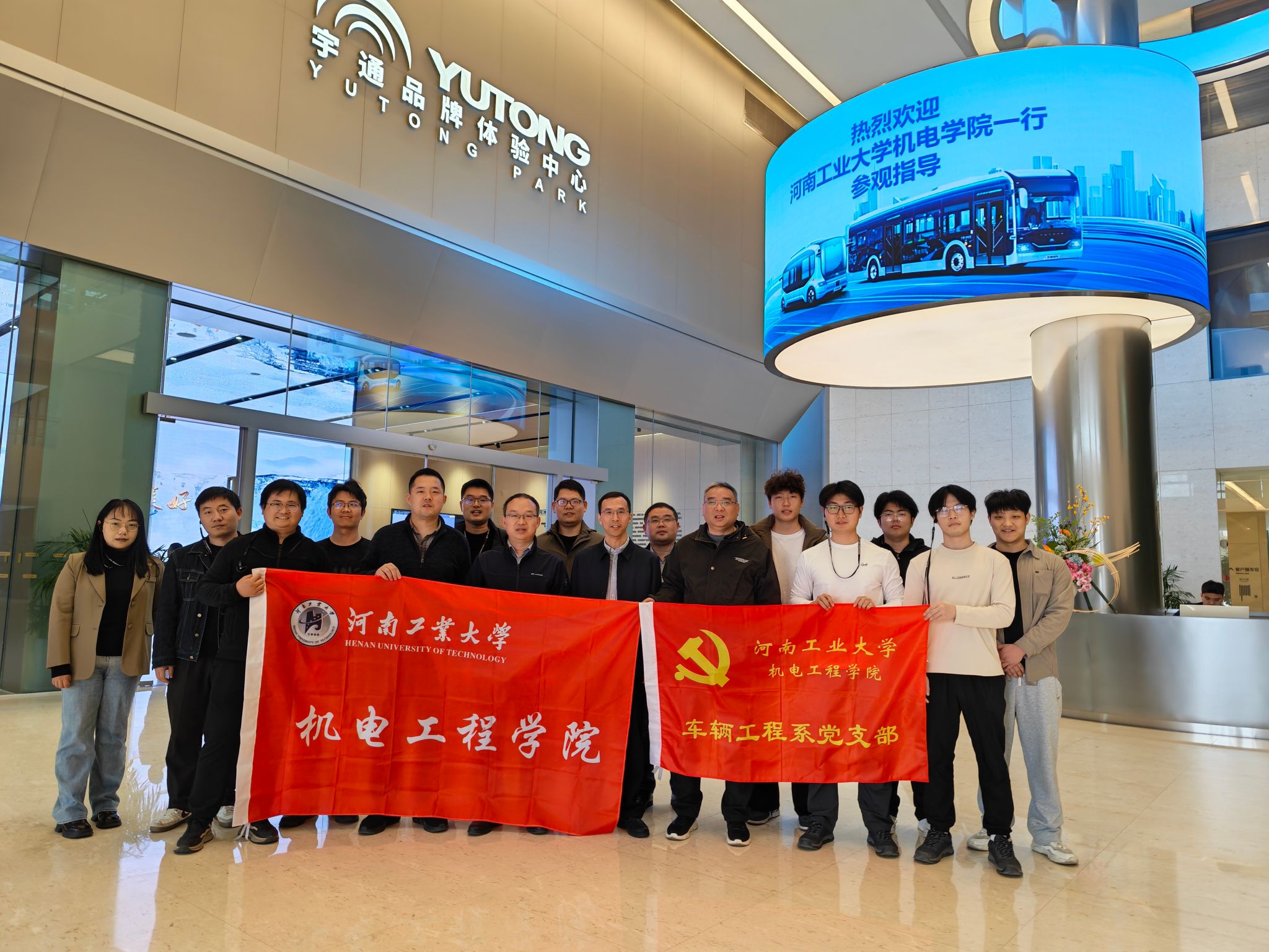 为进一步创新党建活动载体,深化产教融合,推动校企合作走深走实,3月26日,机电工程学院党委书记魏涛、车辆工程系主任吴心平、党支部书记张涛及党员师生代表一行走进宇通集团,以“党建+业务”深度融合为主题,开展主题党日活动。宇通集团教育公司总经理韩德利、丁佳音老师全程陪同。