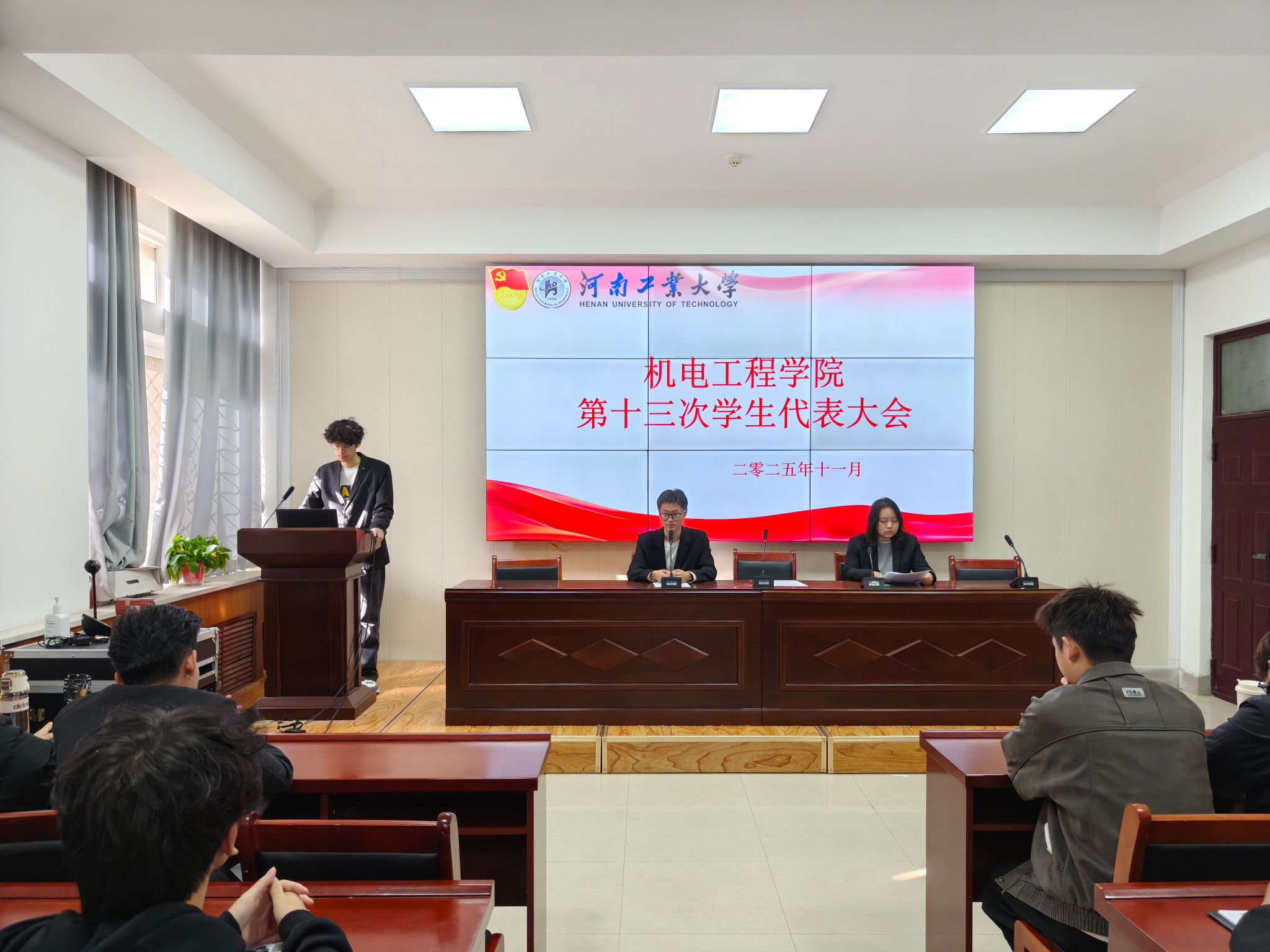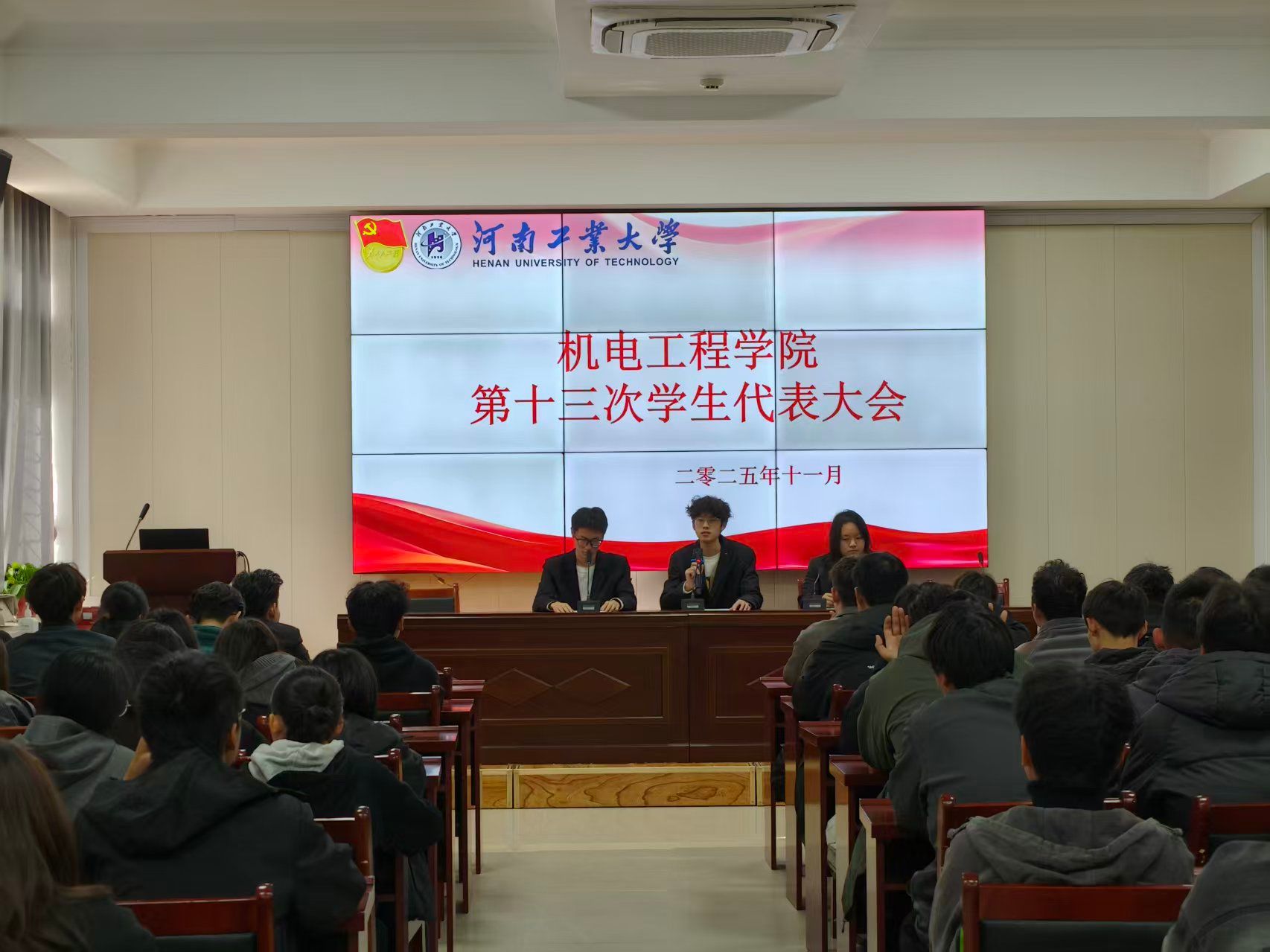 经过前期认真统筹和悉心安排,10月25日下午,我院第十三次学生代表大会在捷赛厅召开。院团委、学工办及全体辅导员老师,第二十届、二十一届学生会成员及我院学生代表出席了本次会议。会议由第二十一届学生会执行主席宋文奇主持。