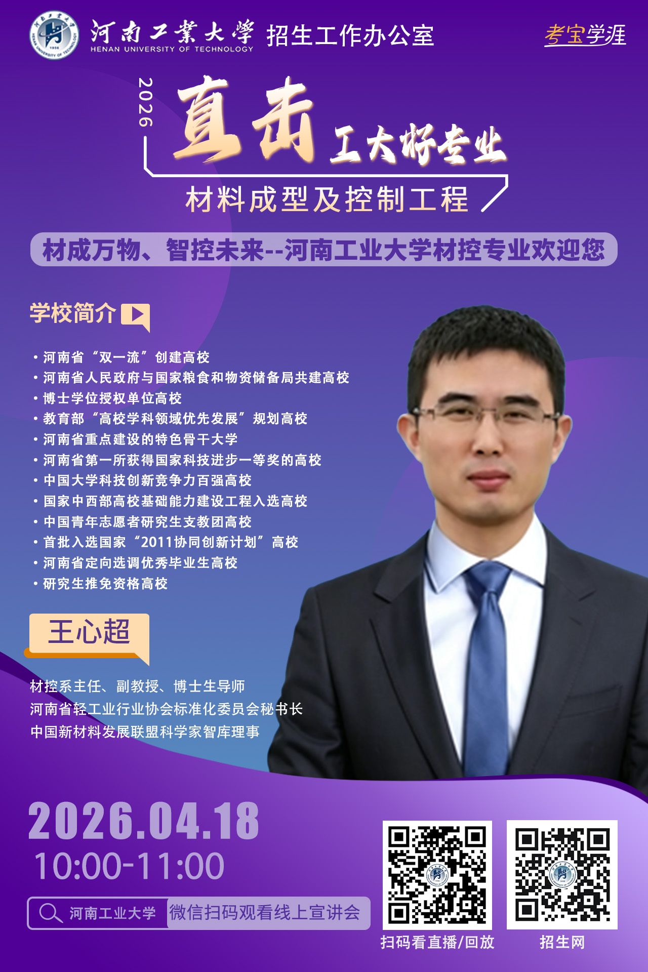 材料成型及控制工程专业源于1956年我校成立的机械制造专业,1988年开设模具方向,2000年被评为国家示范性专业,2004年开始本科专业开始招生,2020年获批河南省一流本科专业建设点。专业学制四年,具有工学学士学位授予权,现为本科一批招生。本专业2006年开始硕士研究生教育,2012年获批材料加工工程二级学科硕士点,2018年获批机械工程一级学科博士点,具备完善的本-硕-博三级人才培养体系。